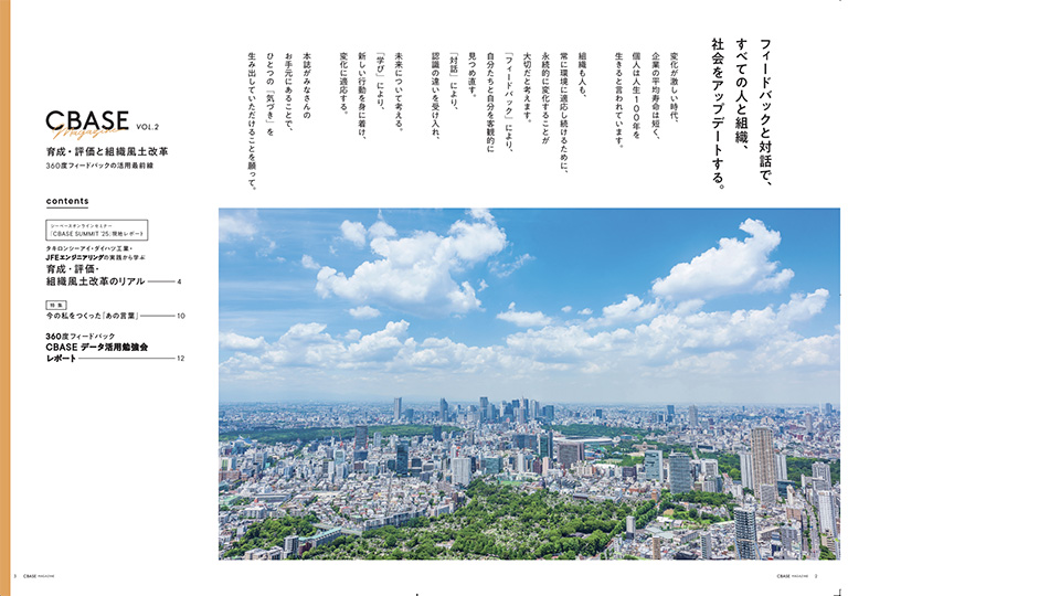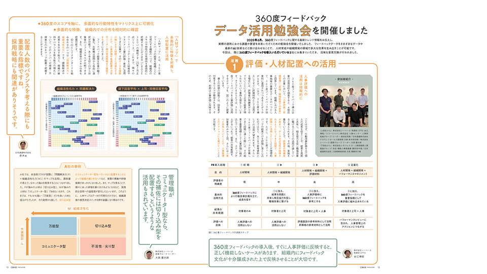 巻頭では、2025年9月に開催された「CBASE SUMMIT 25’」のセミナーレポートとして、360度フィードバックの活用を進めている3社の事例の解説やディスカッションの内容を掲載しました。